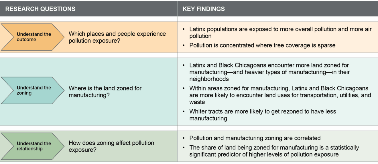 - What are the public health, equity, and environmental impacts produced by Chicago’s zoning and related land use practices?