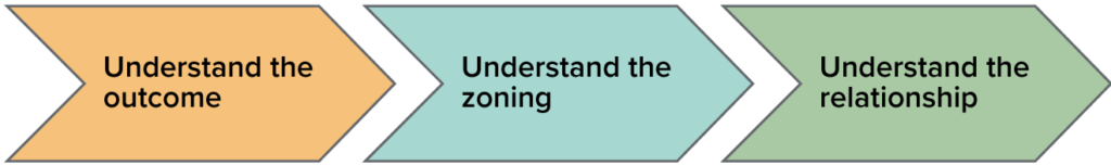 First, we focused on understanding the outcome we were reviewing. Second, we focused on understanding how zoning intersected with the outcome. Third, we focused on connecting the outcome with the zoning to understand the relationship between the two. To review zoning, maps and data sets were compiled to compare changes across three distinct points in time: 2003, 2013, and 2023.